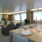O iate de Gusttavo Lima impressiona pelos detalhes e comodidades. O barco tem capacidade para 12 passageiros — sem contar a tripulação — e conta com cinco cabines e cinco banheiros espaçosos. A área interna lembra uma residência de alto padrão, com sala de estar, sala de jantar e ambientes climatizados que garantem conforto total durante as viagens.